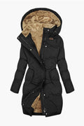Wrap yourself in ultimate warmth and sophistication with this chic winter coat. Featuring a plush fleece lining, a cozy hood, and a long silhouette, it's the perfect choice for braving the cold while staying stylish. Whether for casual outings or invigorating winter walks, this coat is designed to keep you protected and comfortable.