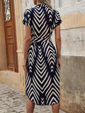Elly | Geometric Print Dress with Tie Belt