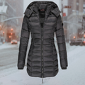 Our winter down coat with hood and zipper – your ultimate ally for cold seasons.
