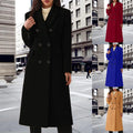 Women's Fashion Casual Long Double Breasted Solid Woolen Coat With Pockets Woolen Coat