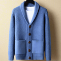 Experience the buttery-soft embrace of 100% cashmere, designed to keep you cozy and effortlessly chic. With its shawl collar and timeless button detailing, this cardigan adds a touch of understated luxury to every outfit.