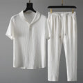 The rich, textured fabric brings subtle structure that sharpens your silhouette and elevates your presence. Whether it’s rooftop drinks, a boutique hotel check-in, or a night to impress—this set gives you the edge. The collar says style. The fit says standards.